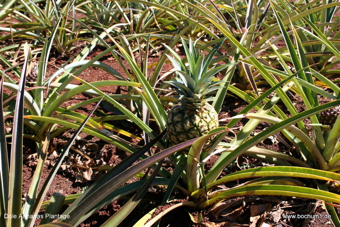 durch die Ananasplantage. Interessant, wenn man schon mal dort ist. Den