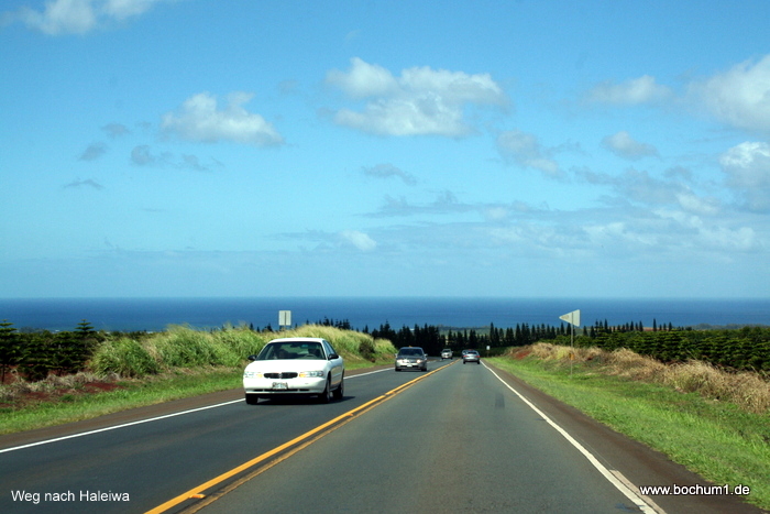 Verkehr) auf dem Kamehameha Highway. Dieser führt entlang der Nordküste