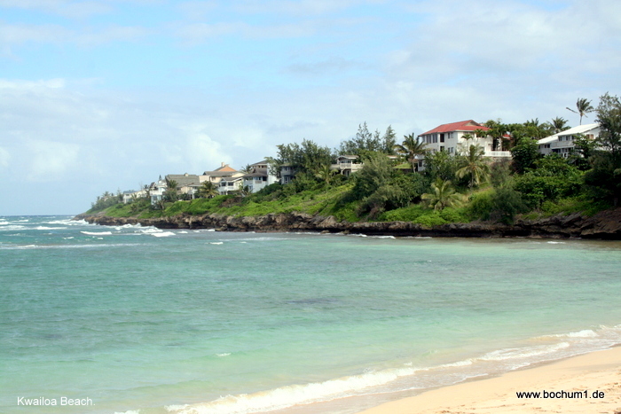 meerseitig viele Häuser, aber da Strände auf Hawaii grundsätzlich