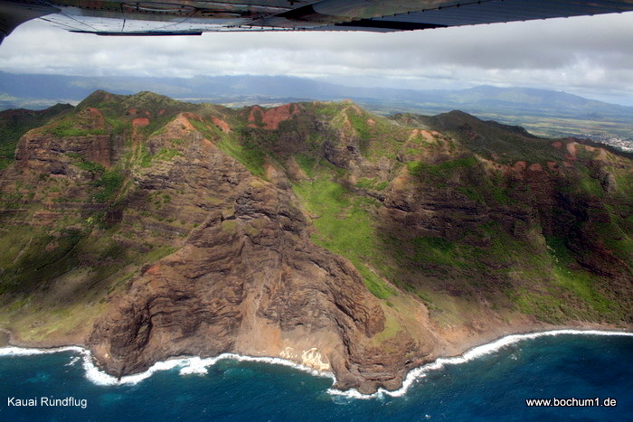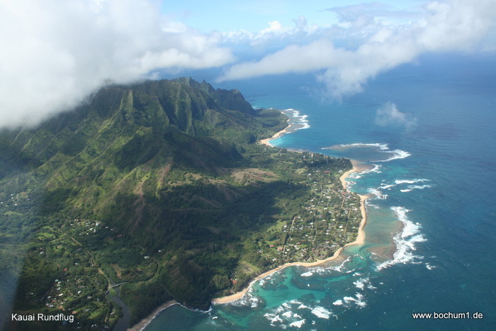 erreichten wir die von der Straße erschlossene Nordküste und flogen bis Princeville. Dort drehten wir nach Süden ab, um über die Makalea