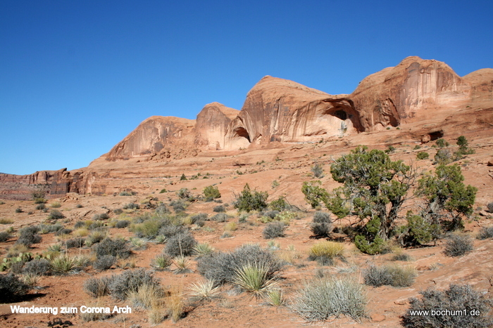 Corona Arch. Von dort aus führt der Trail erst über die