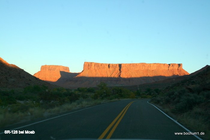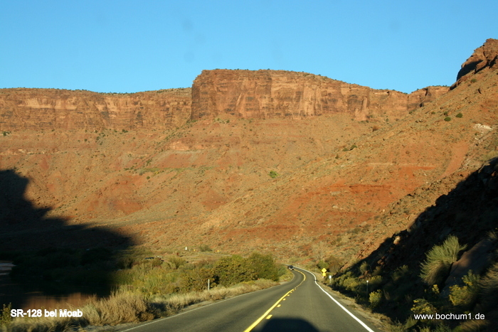 die SR128 durch ein Tal immer parallel zum Colorado. |