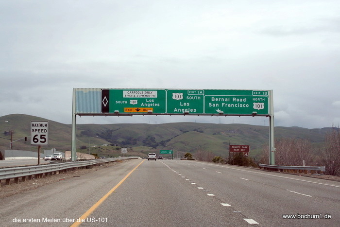 Erst den Highway 101 nach Süden, ab Gilroy über den