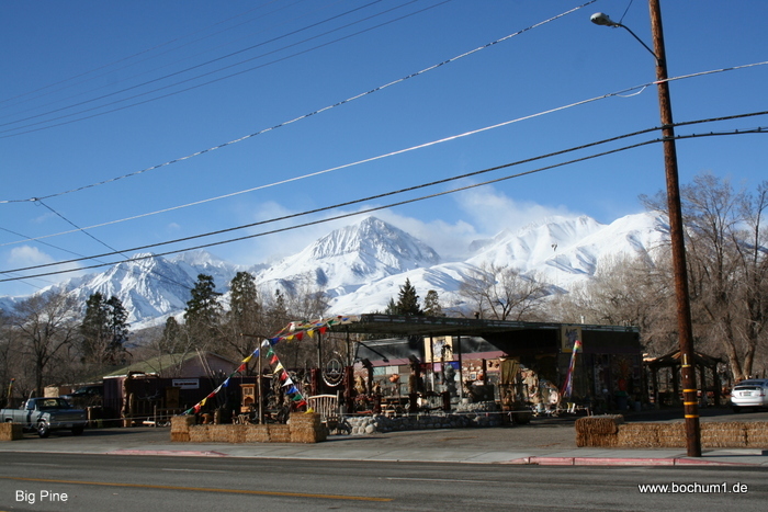 eine dicke Schneedecke auf dem Dach hatten. In Big Pine / Bishop war