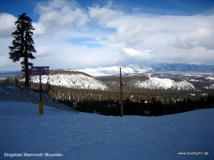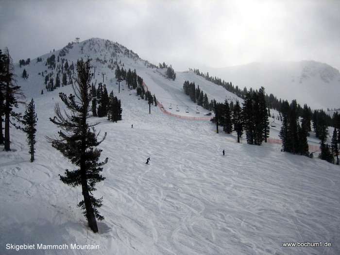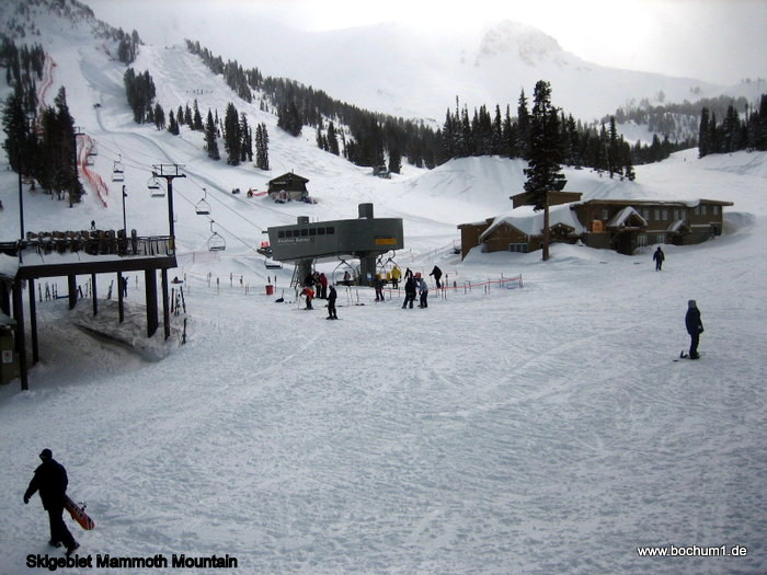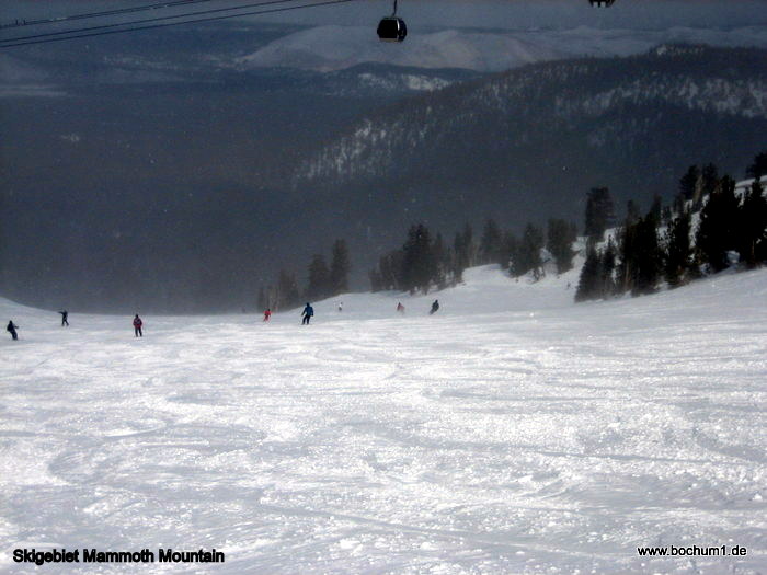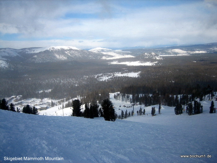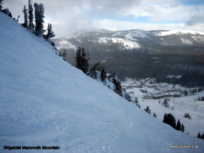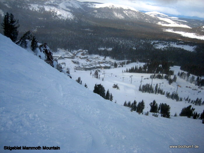 zum Ort Mammouth Lakes hinunter gerutscht. |