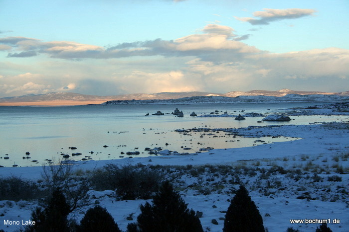Sonnenuntergang entlang. Vorbei am Mono Lake, dessen aus dem Wasser