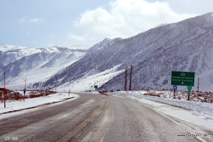 links abgebogen und habe die restlichen 5 Meilen nach Mammoth Lakes auf