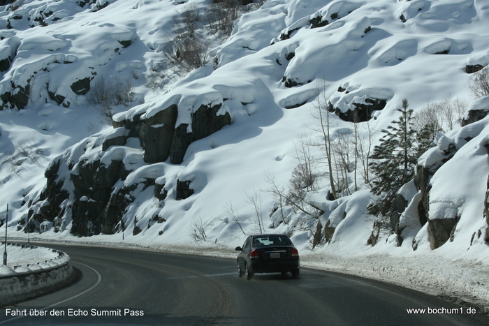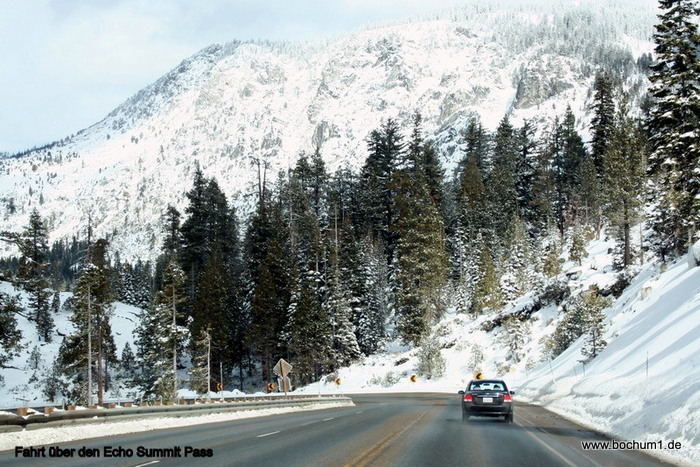 Fahrbahn) über den 2.235 Meter hohen Echo Summit Pass