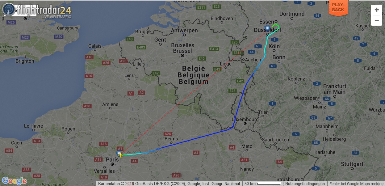 nach etwas über einer Stunde Flugzeit von Paris aus, in Düsseldorf. Dort