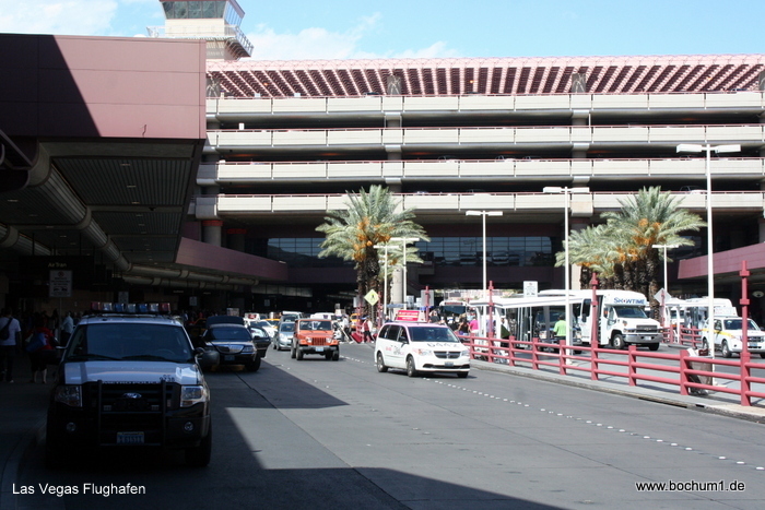Der ständig pendelnde Transfer-Bus brachte uns in 10 Min. Fahrt zum Domestic-Terminal des McCarran Flughafens. Wie