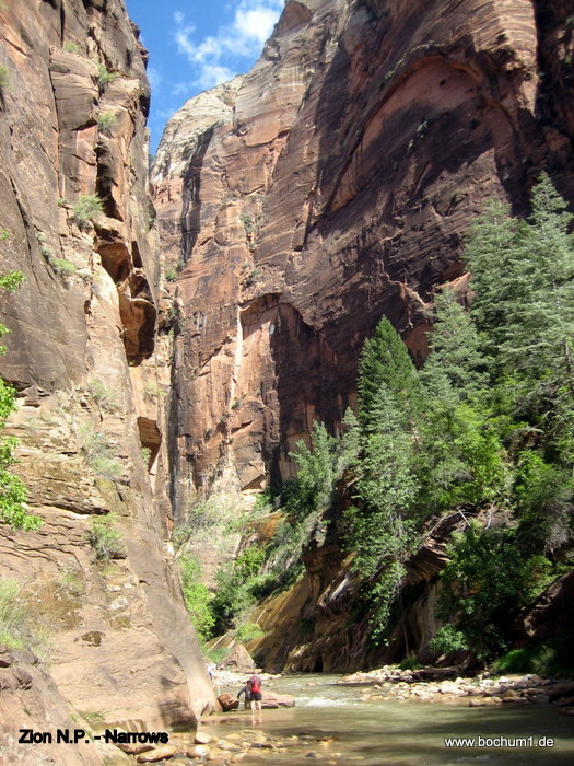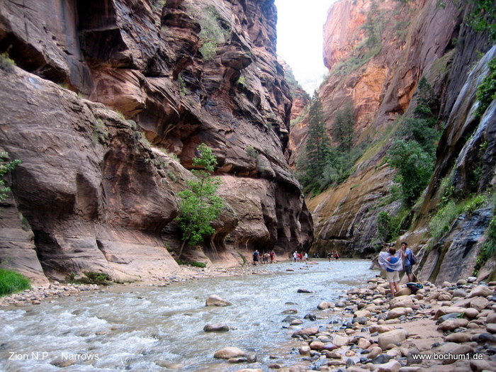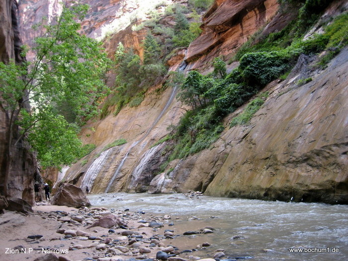 bis zu den Oberschenkeln. Anfangs quert man den Virgin River häufiger,