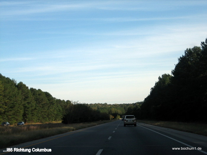 anlegte. Nach 60 Meilen auf der I85 wechselte ich auf die I185, der ich