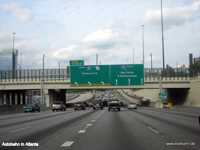 kurz vor Atlanta, wo die I85 bis zu 8 Fahrspuren besaß, dichter Autoverkehr