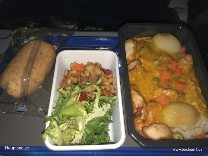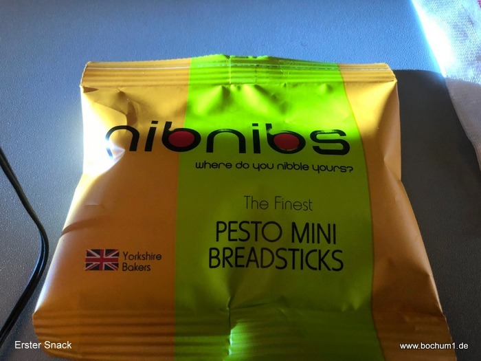 Form von Brot-Sticks und nach 1 ½ Std. Flug das Hauptessen in Form von
