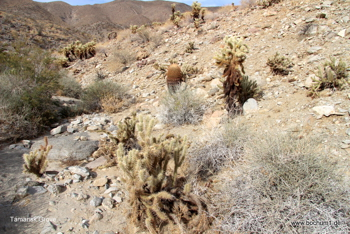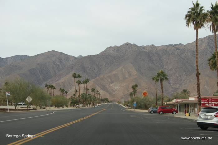 Also 2 Meilen weiter zum Parkplatz am Borrego Palm Canyon Trailhead