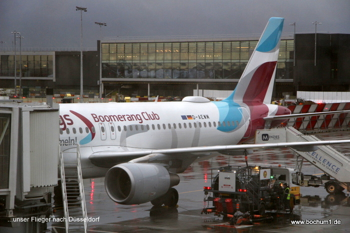Boarding für unseren Flug nach Düsseldorf. Wegen des strömenden