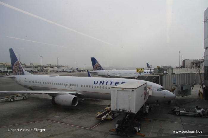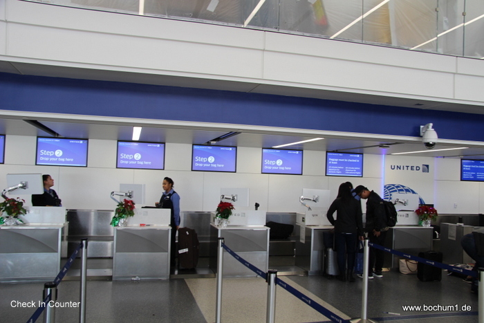 Da wir mit United Airlines flogen und die Schalter wegen der zahlreichen