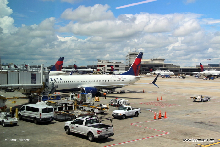 Nach 9 Std. 5 Min. Flugzeit landeten wir in Atlanta und rollten den langen