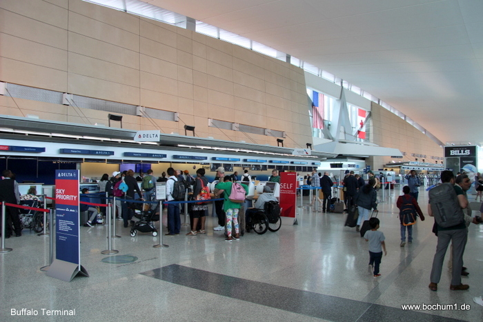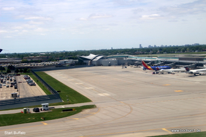 Schönwetterwolken pünktlich um 12.40 Uhr in Buffalo ab. Über die