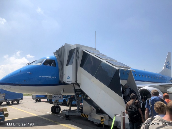 auf das Vorfeld, um in die Embraer 190 zu steigen. Bei wolkenlosem
