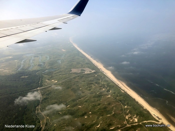 südlich vorbei an Grönland über Irland und England nach Amsterdam. Anstelle