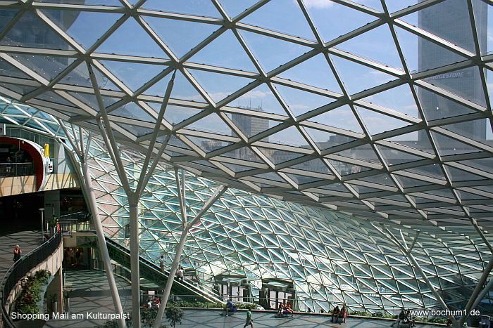 Dachkonstruktion aus Glas, welche das Gebäude sehr
