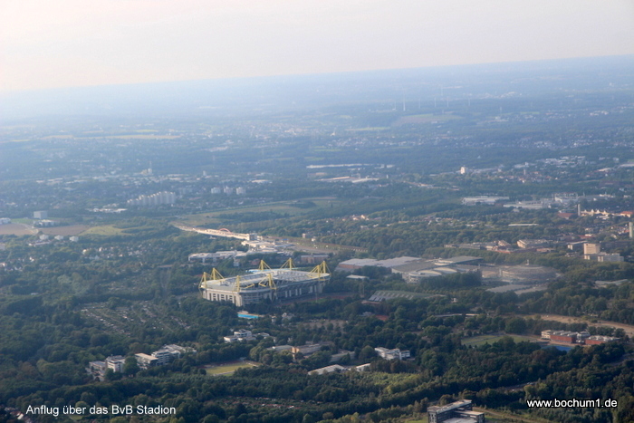 Flugzeit landeten wir mit Anflug vorbei am Borussia Dortmund Stadion