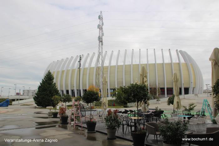überdacht (es regnete immer noch leicht). Das Arena Centar ist eine der