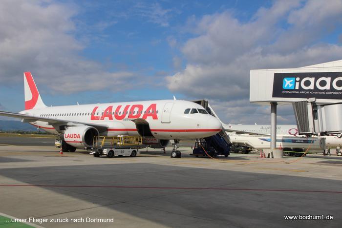 pünktlich um 16 Uhr flogen wir mit der Boeing 737-800 von Lauda-Air
