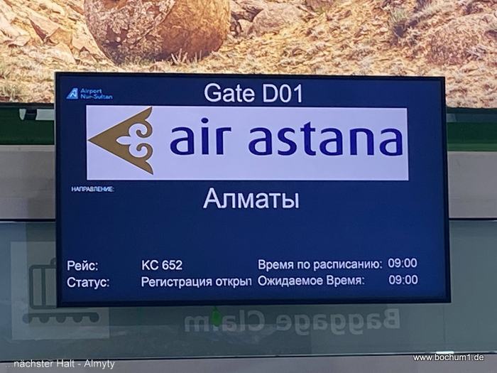 Flug nach Almaty dauerte 1 Std. 30 Min. und es gab sogar zwei Getränke