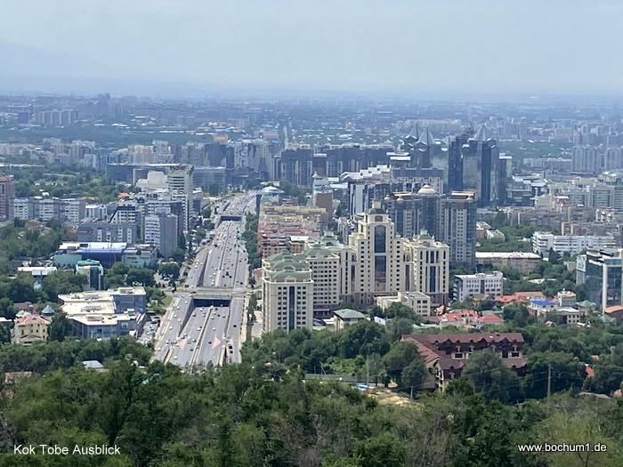 auf die 600 Meter niedriger liegende Stadt Almaty. |