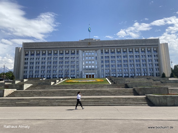 700 Meter zum Hauptplatz der Stadt, dem Abai Square. Dort ist der Palast der